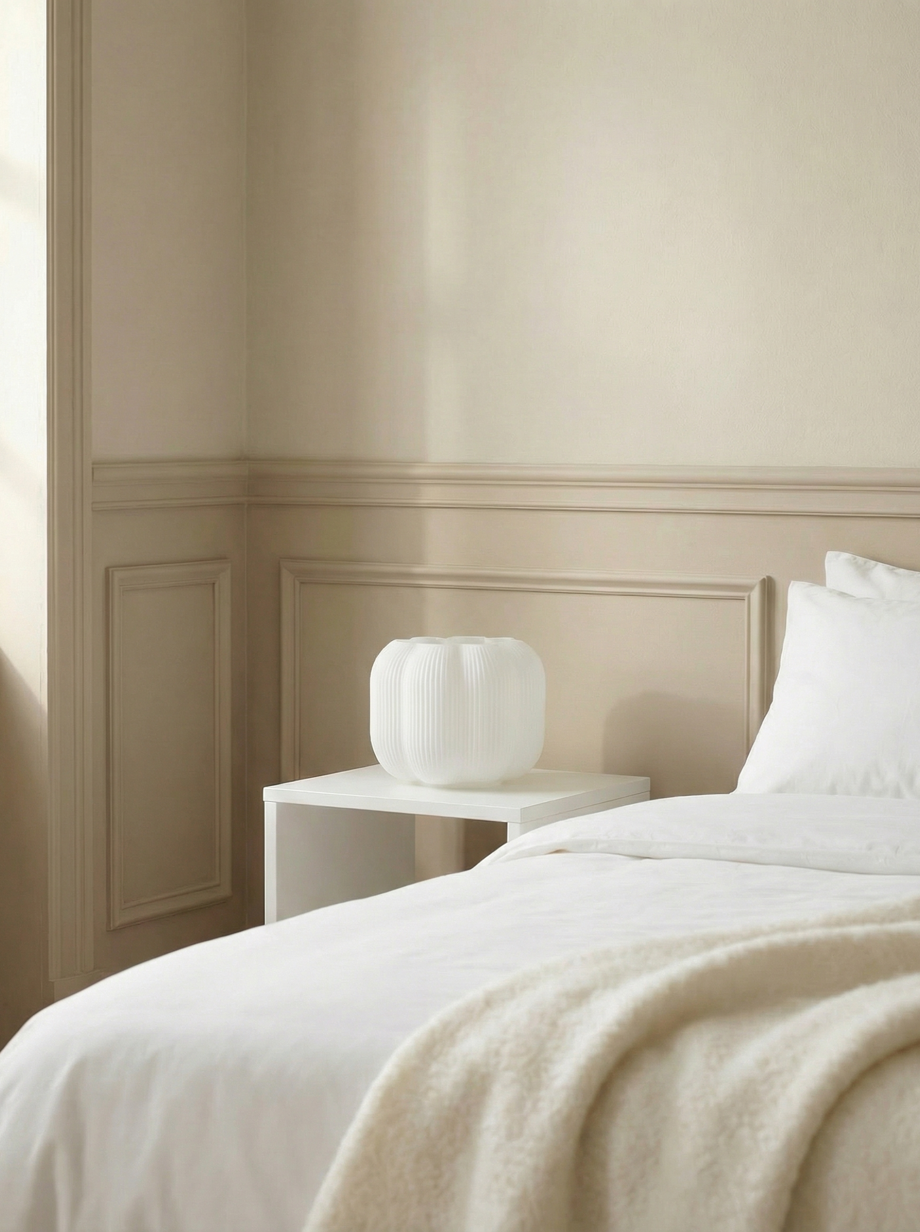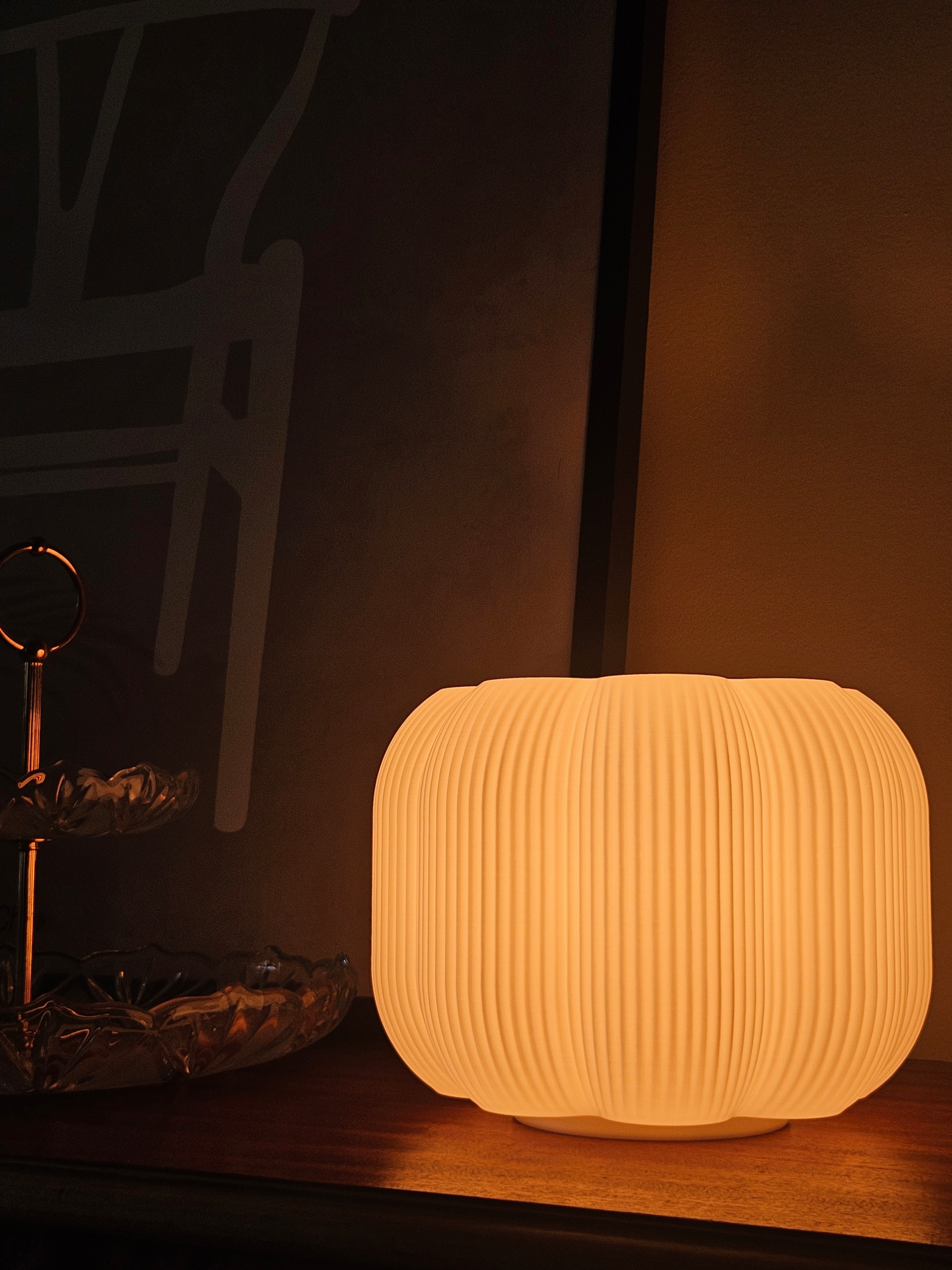 Vaalea, kauniin ajaton valaisin, jonka epäsuoralla valolla saa aikaan rentouttavan ja hienostuneen ympäristön. Valaisimen elegantti ulkomuoto ja lämmin värisävy tekevät siitä sekä käytännöllisen että esteettisen elementin tunnelmanluontiin. Tämän valaisimen tasapainoinen design antaa erinomaisen säväyksen tilaan, jossa arvostetaan tyyliä ja toimivuutta.